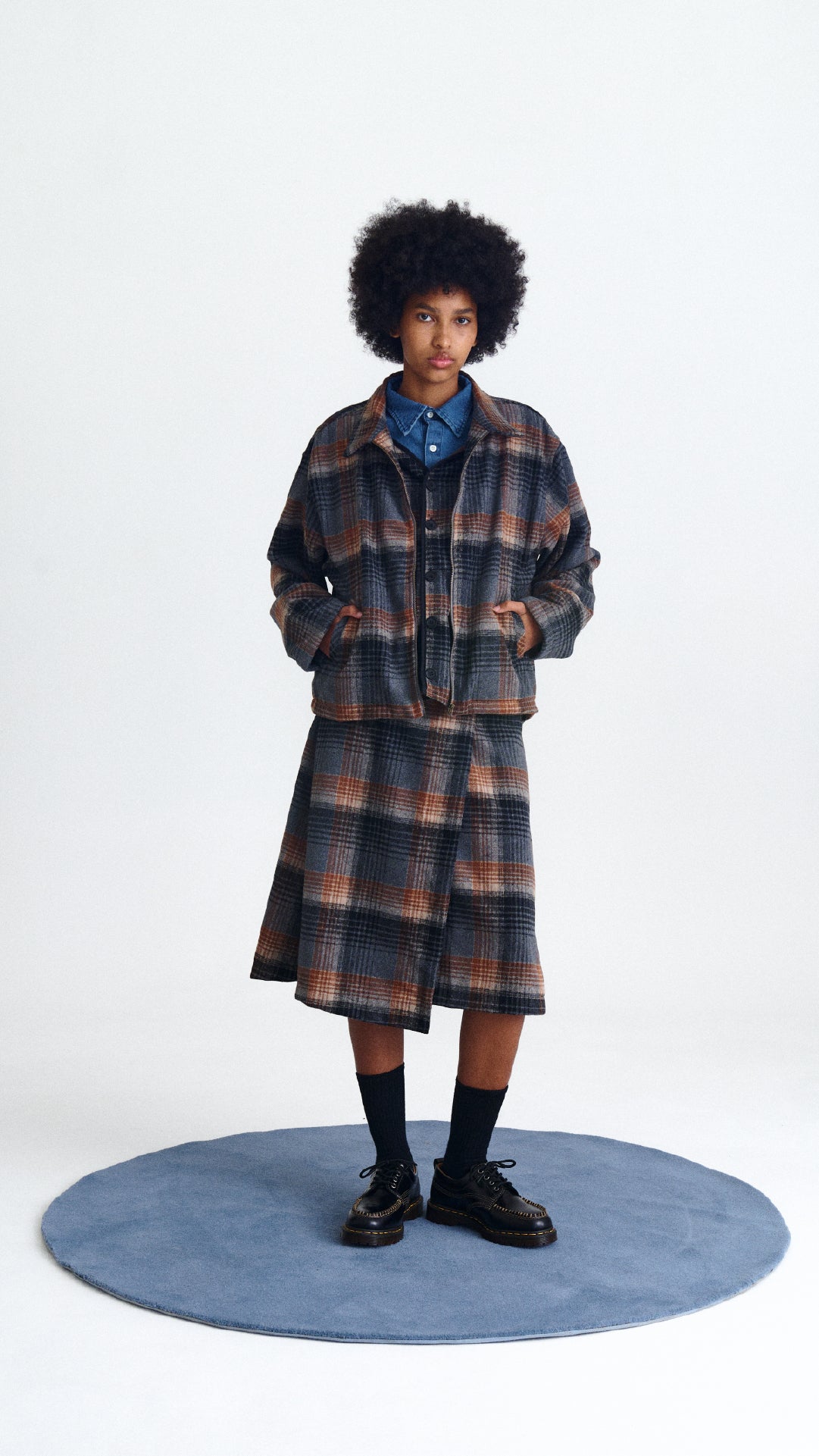 Camisaco de canvas de calce amplio con bolsillo frontal. Bolsillos laterales y recorte en bajomanga. Acceso con botones de pasta y etiqueta personalizada.