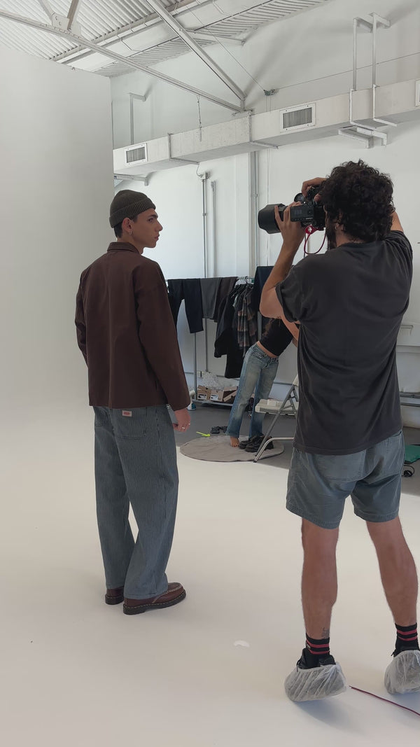 Campera de corderoy de calce regular con bolsillos diagonales frontales y elástico embutido en cintura. Acceso con cierre central metálico y etiqueta personalizada.