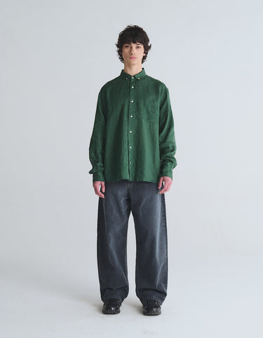 Camisa m/l de Puro Lino. Botones de pasta con logo y bolsillo delantero. Bordado personalizado frontal en bolsillo.