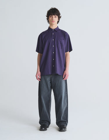 Camisa m/c de algodón con leve textura. Bolsillo delantero con bordado a tono y acceso con botones de pasta personalizados.