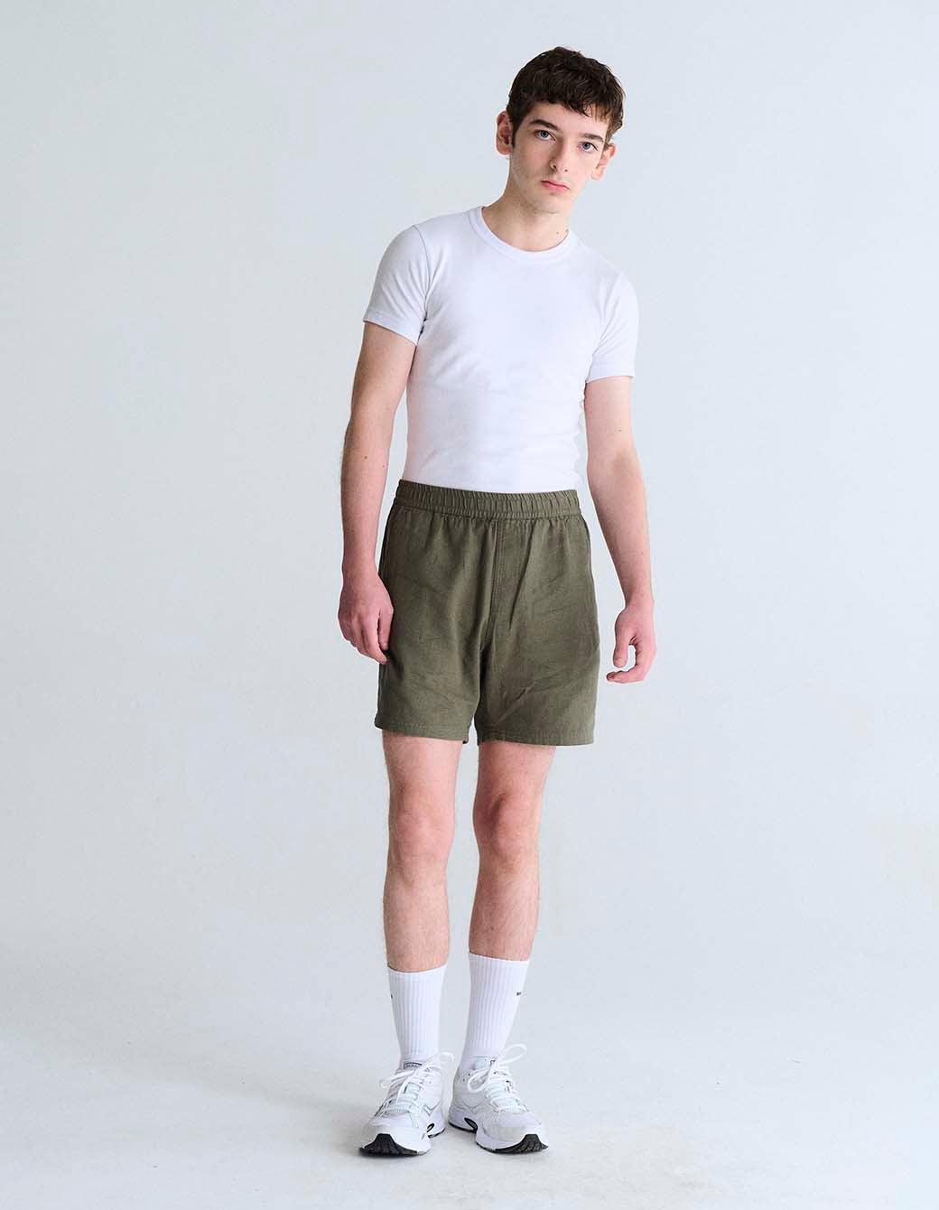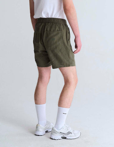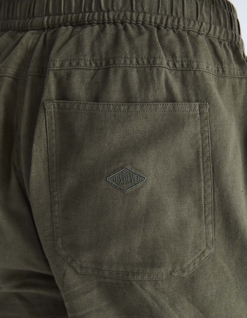 Bermuda de lino con cintura elástica y cordón de ajuste, con bolsillos delanteros laterales. Bordado personalizado en bolsillo.