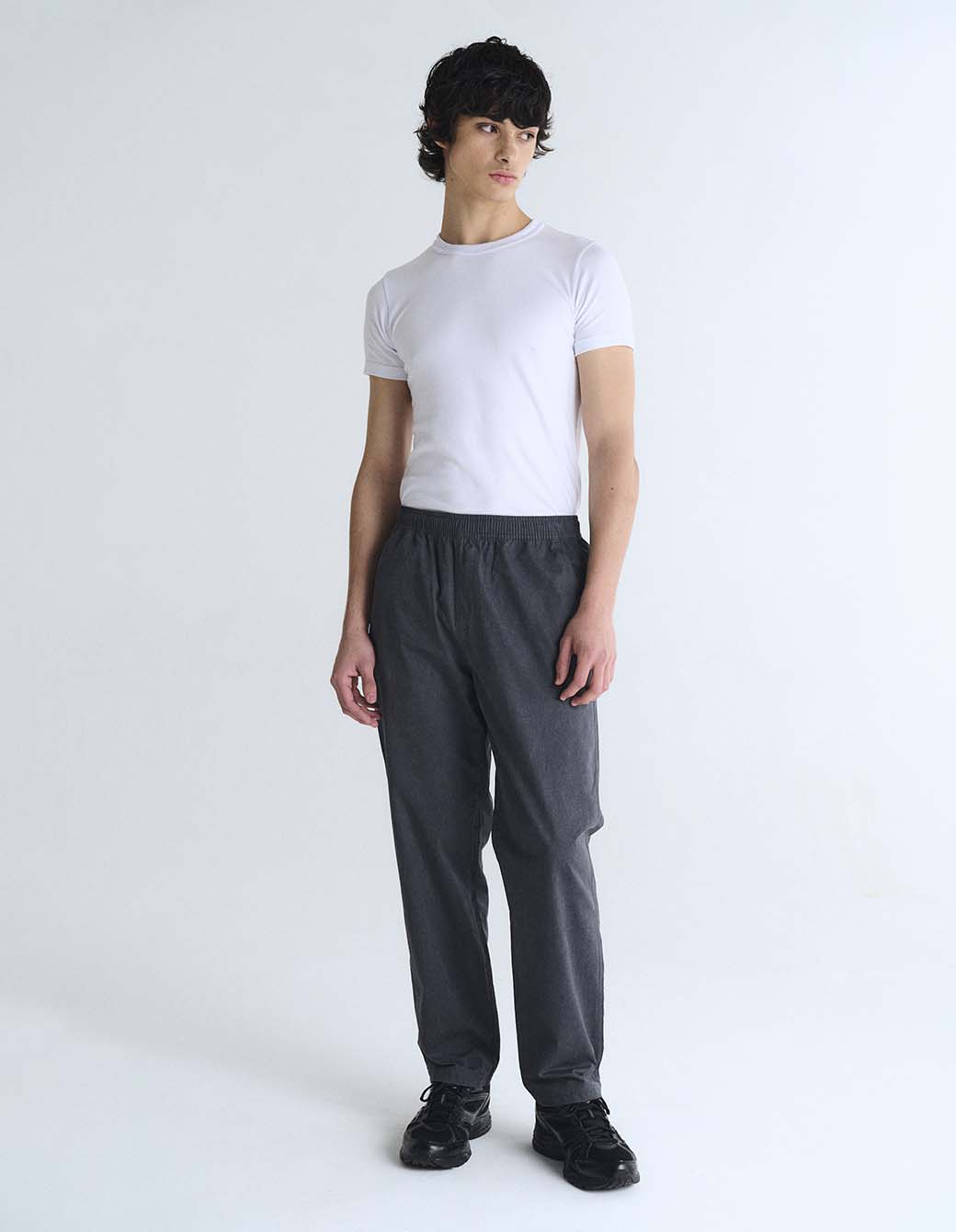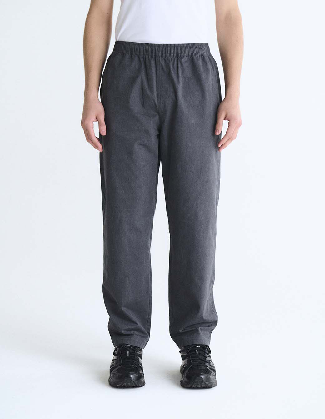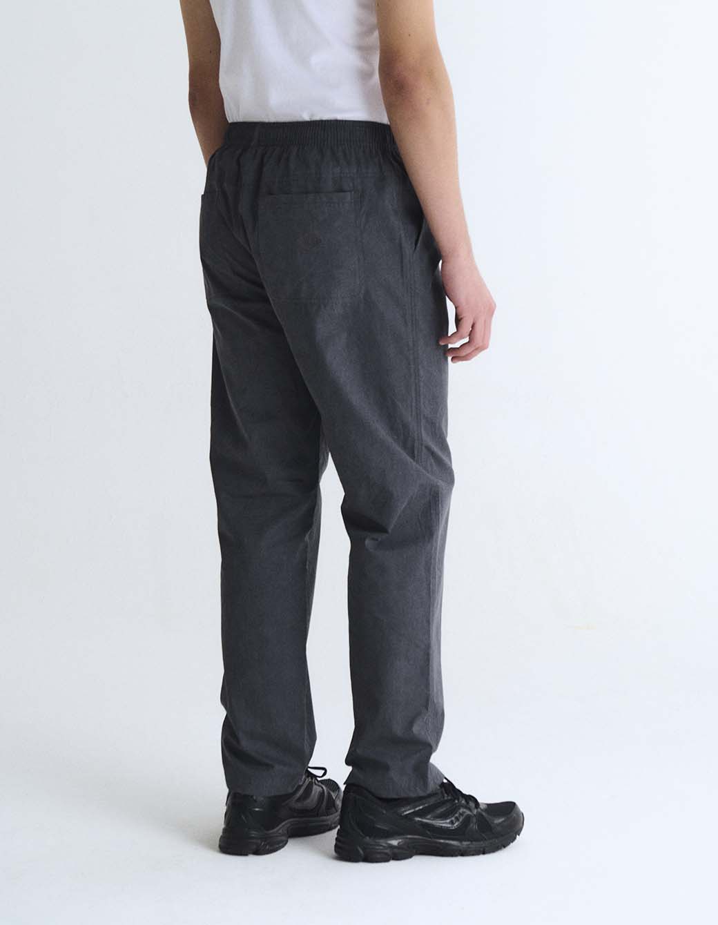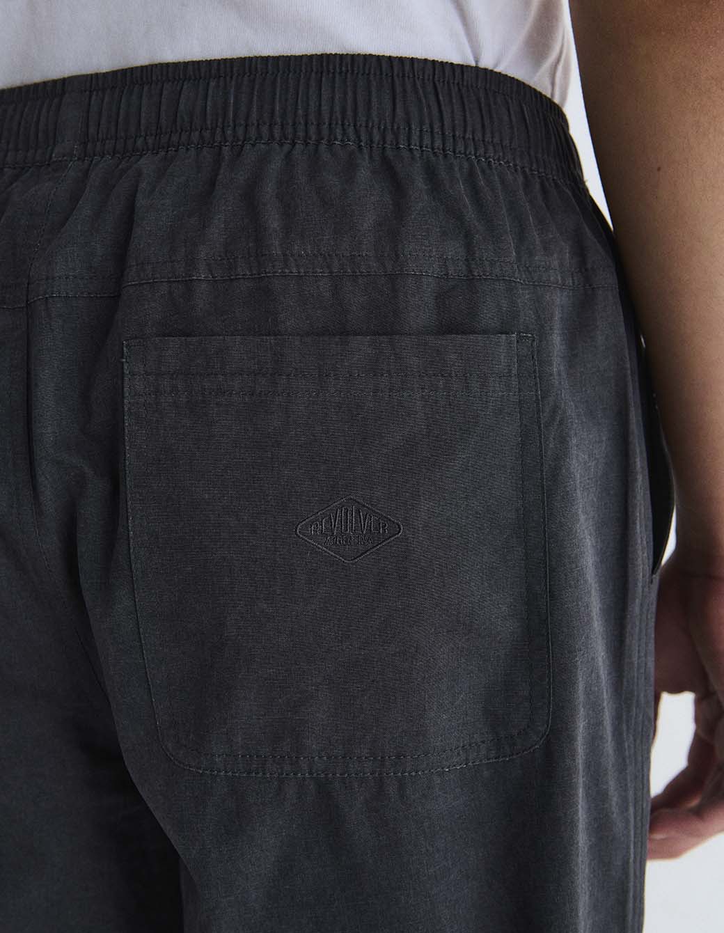 Pantalón de algodón con proceso de teñido y desgaste de color en prenda. Con cintura elástica y cordón de ajuste interno, bolsillos delanteros laterales y bolsillos plaque en trasero con bordado personalizado.