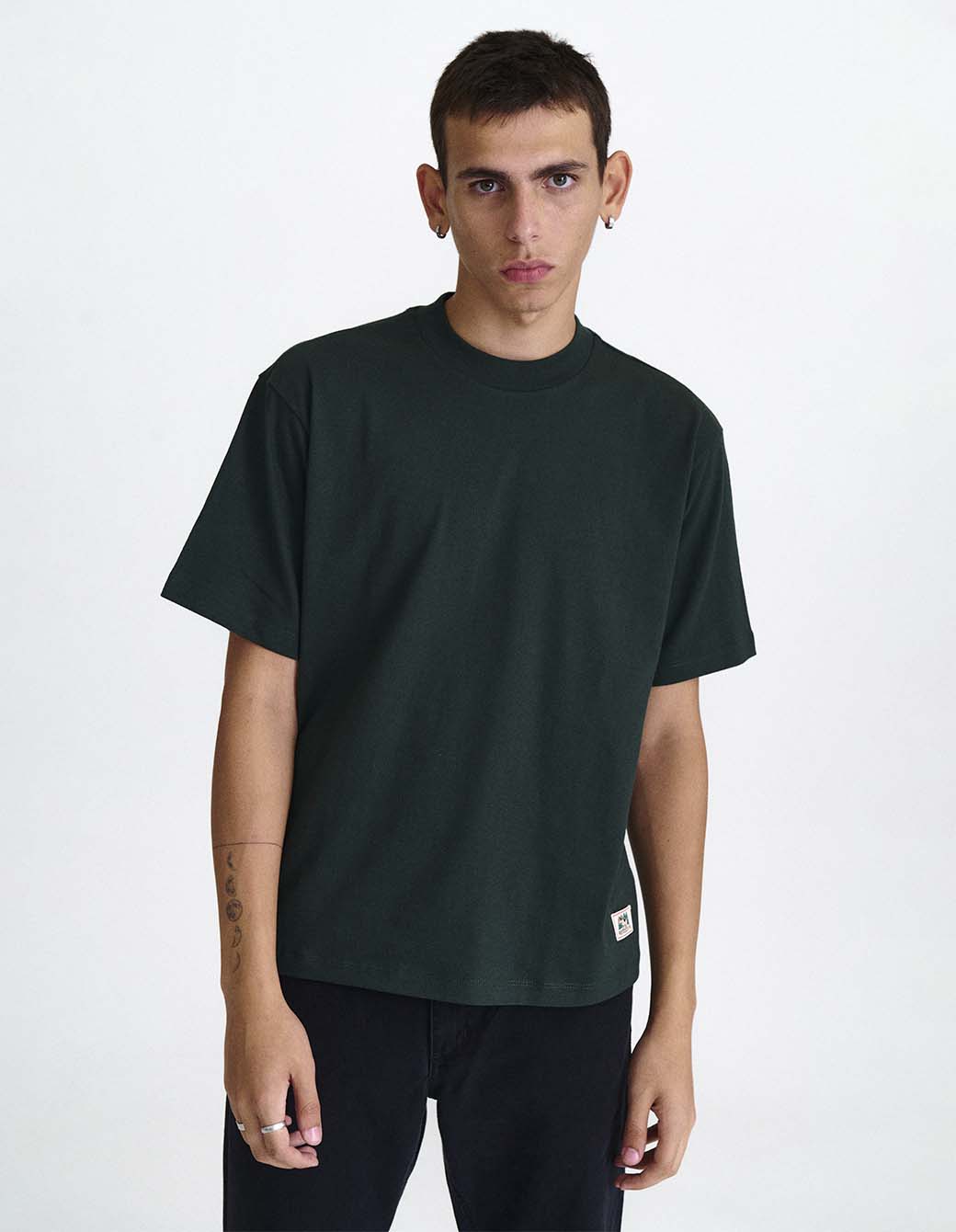 Remera lisa m/c cuello redondo de calce amplio en jersey pesado 204grs, con etiqueta personalizada frontal.