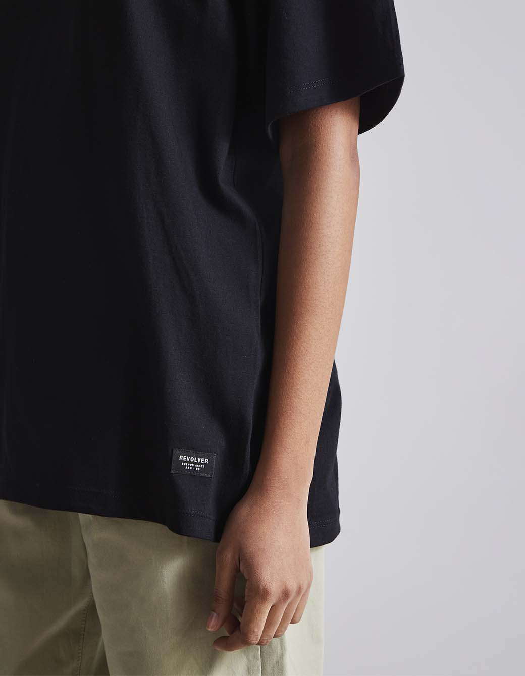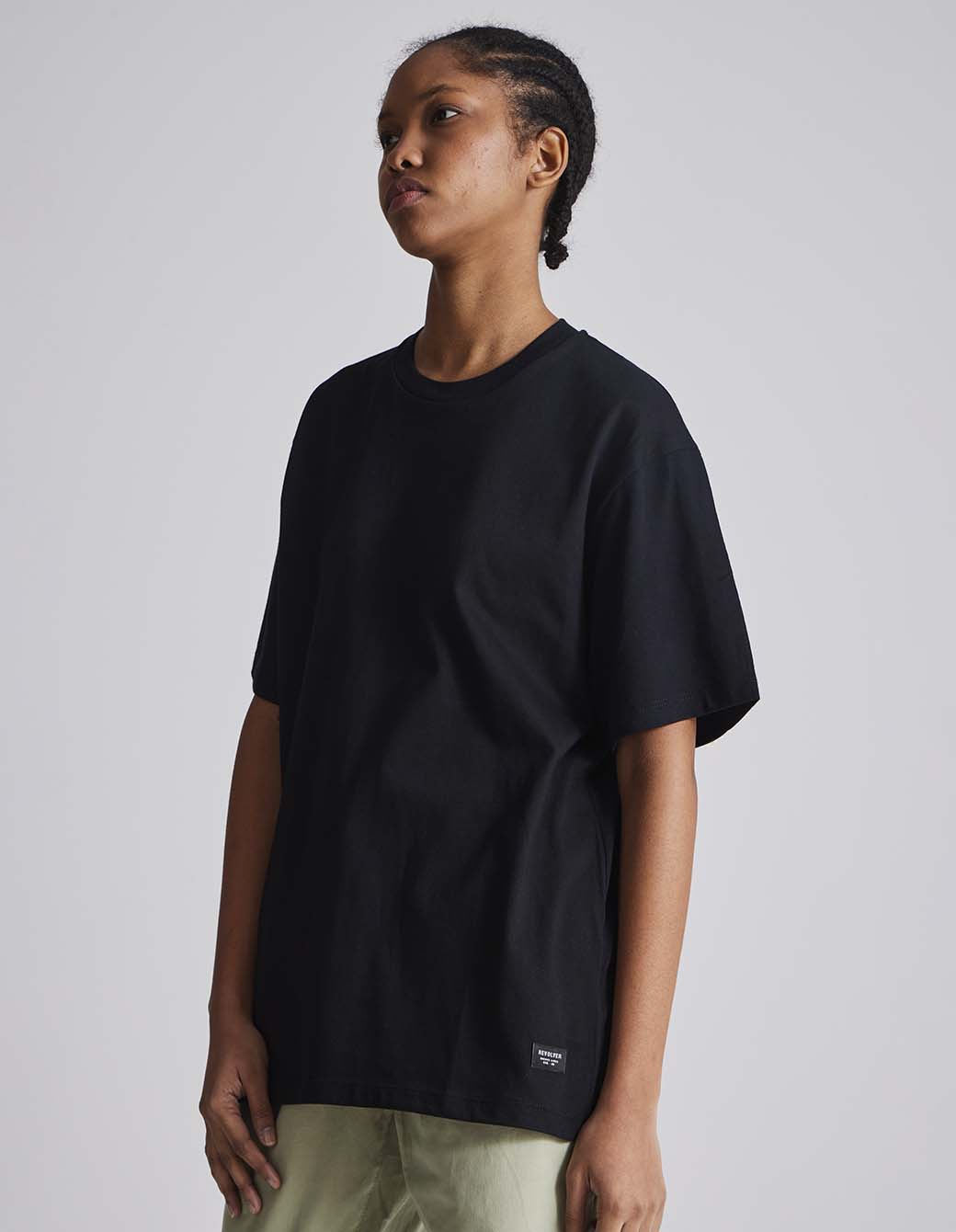 Remera lisa de jersey m/c calce regular con escote redondo y etiqueta frontal.