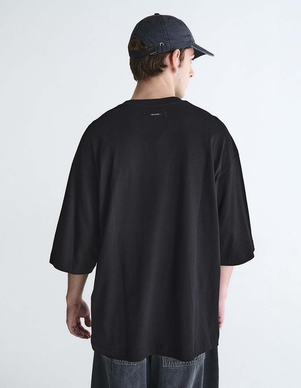 Remera lisa m/c cuello redondo de calce amplio en jersey pesado, con etiqueta personalizada frontal.