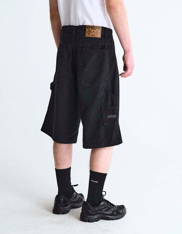 Bermuda carpintera de bull con botones y remaches metálicos, badana JL, bordado personalizado. Lavado desgaste parejo.