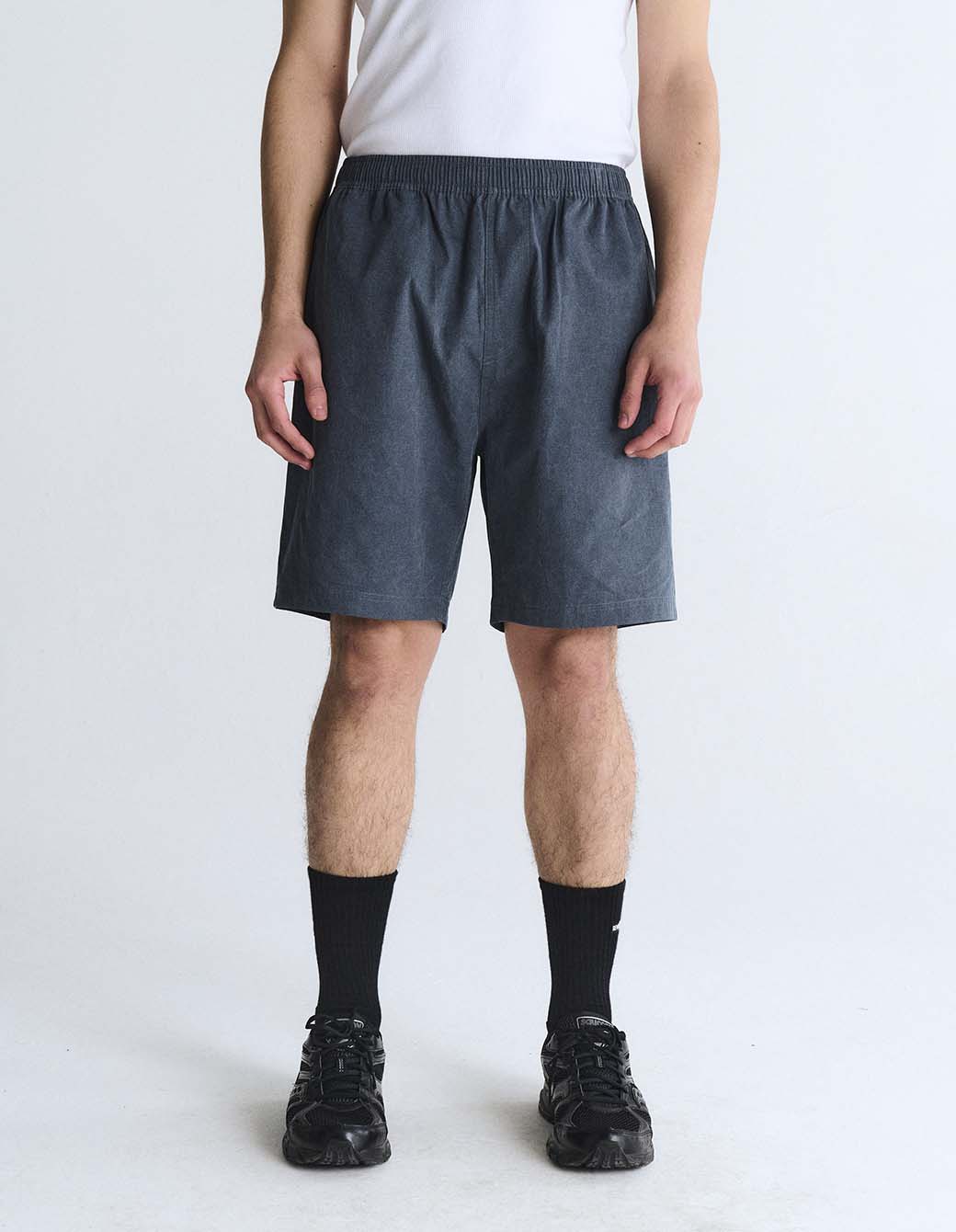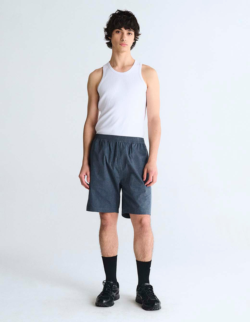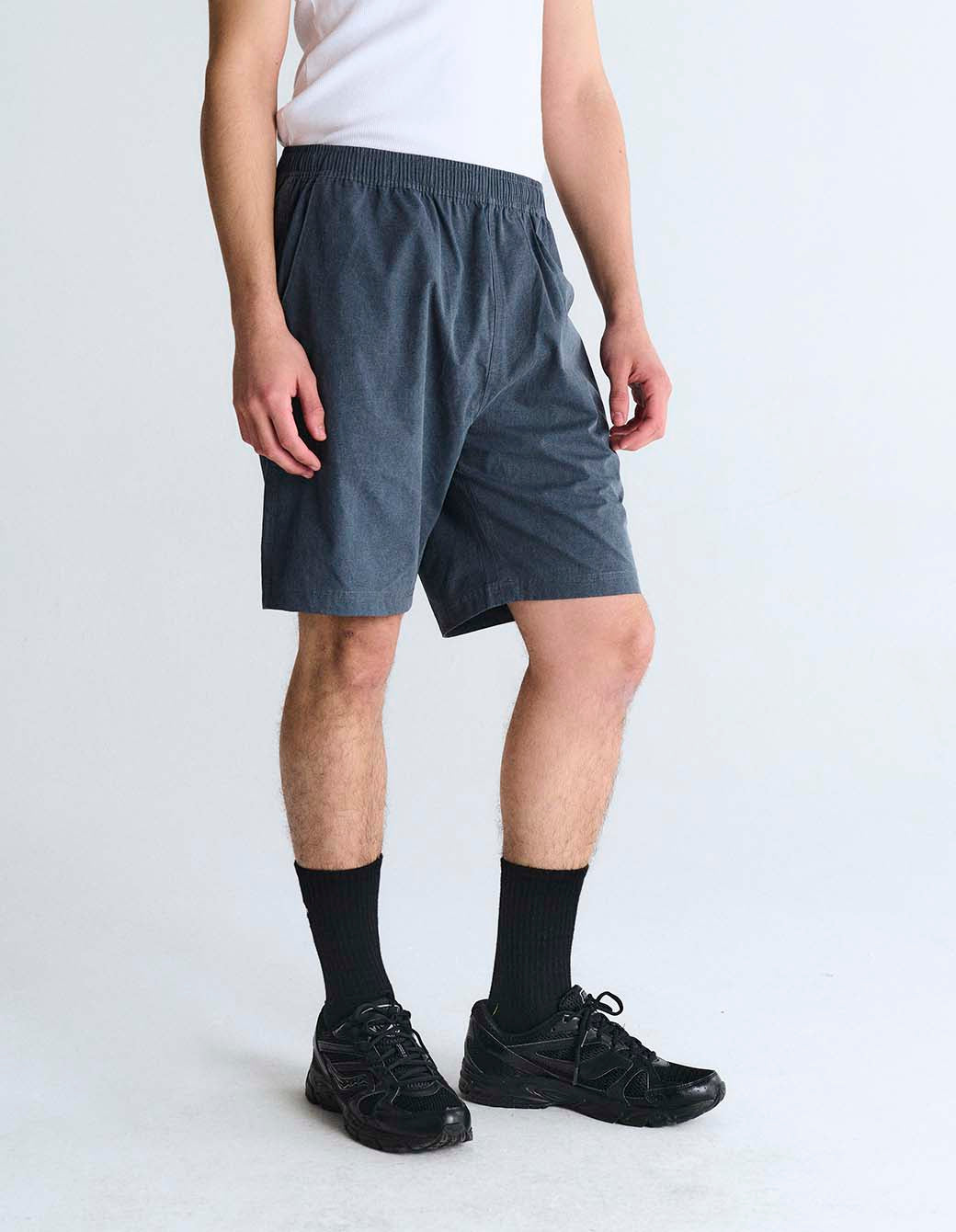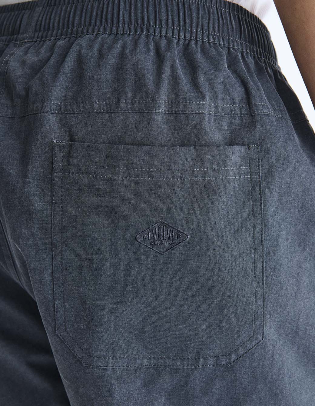 Bermuda de algodón con proceso de teñido y desgaste de color en prenda. Con cintura elástica y cordón de ajuste interno, bolsillos delanteros laterales y bolsillos plaque en trasero con bordado personalizado .