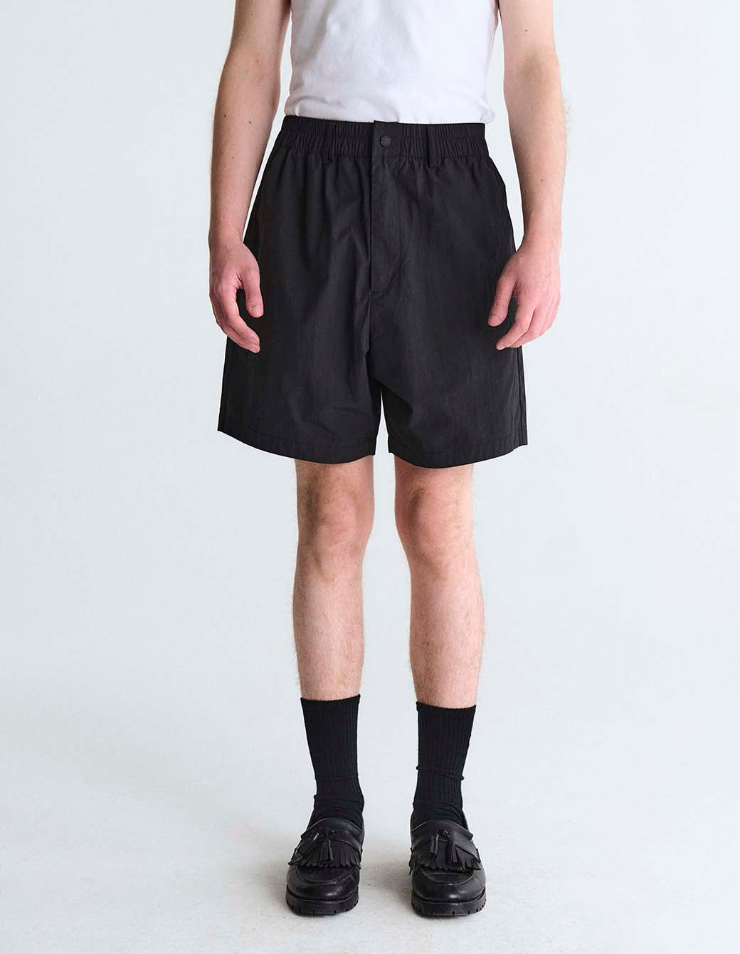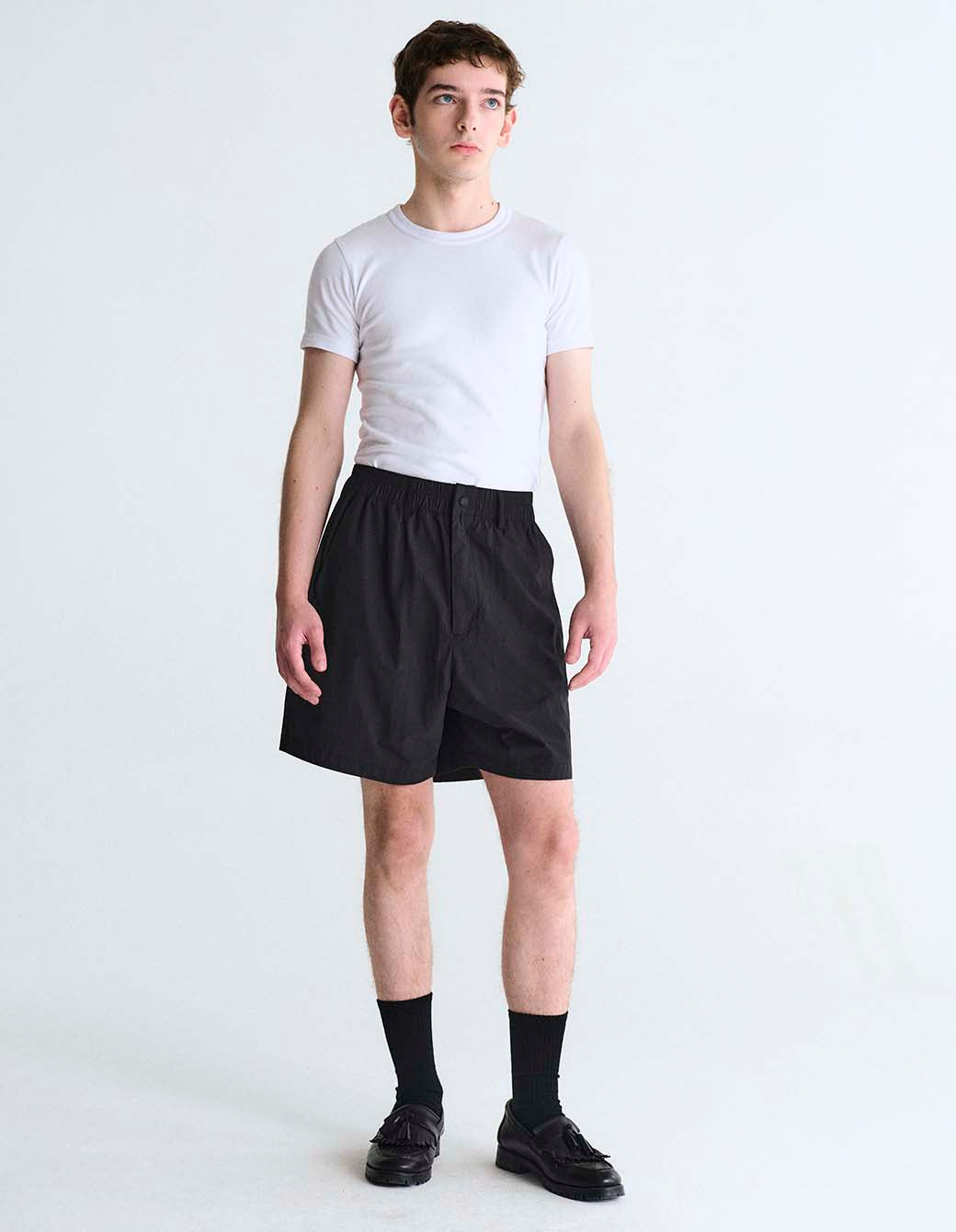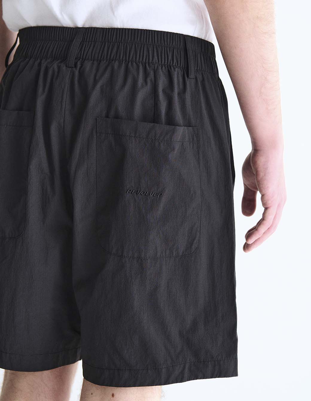 Bermuda técnica de cintura elástica con bolsillos diagonales delanteros y bolsillos plaque traseros. Personalizada con bordado en bolsillo a tono.