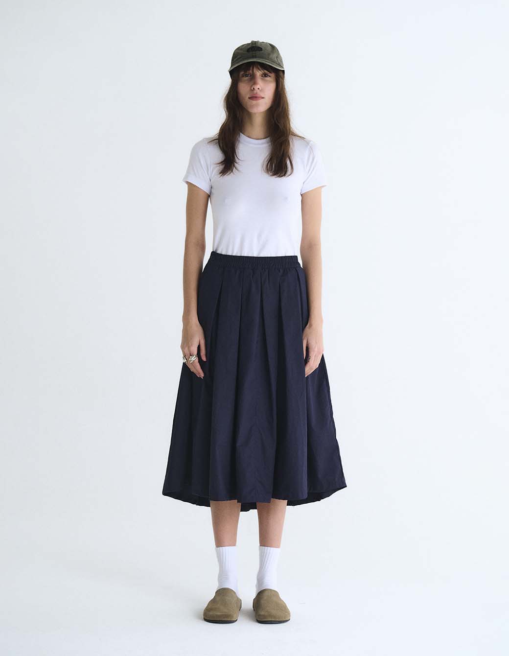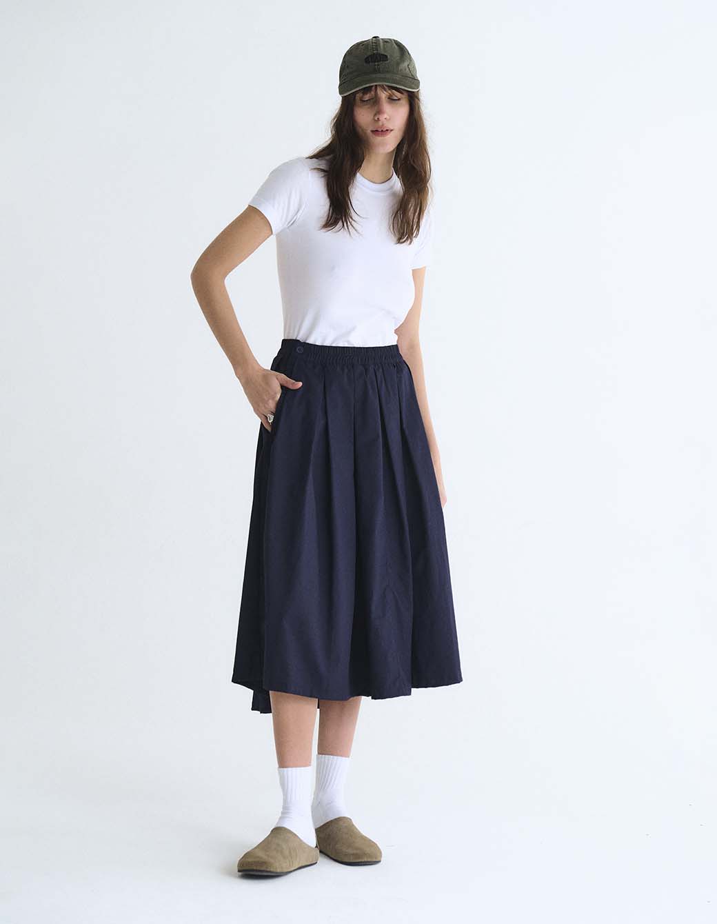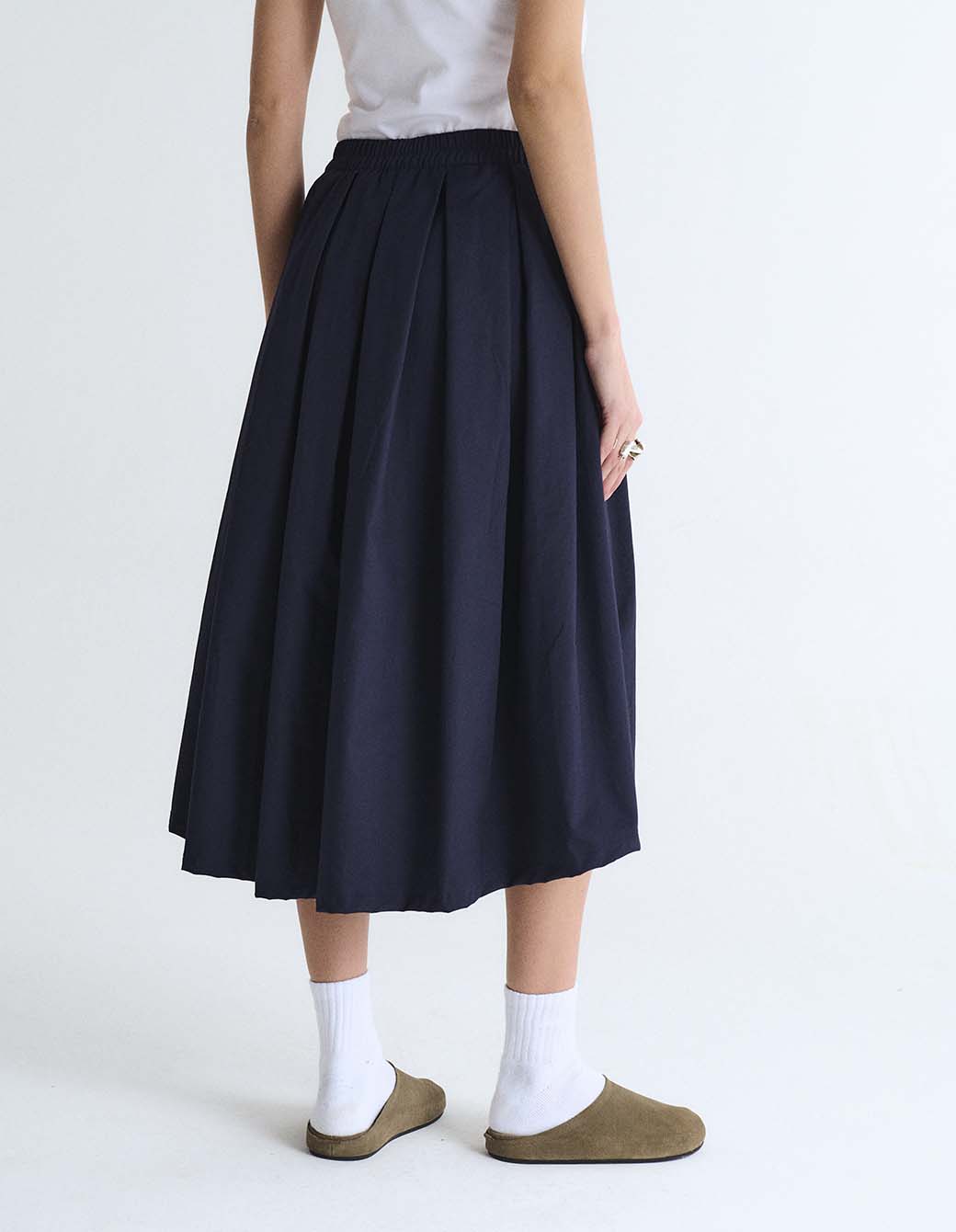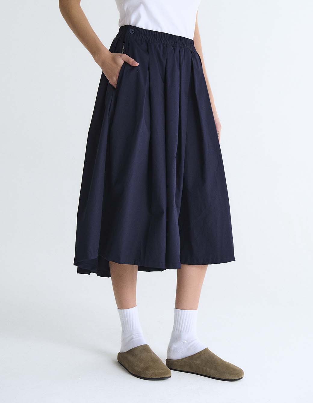 Pollera tableada con cintura fija.