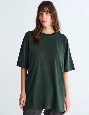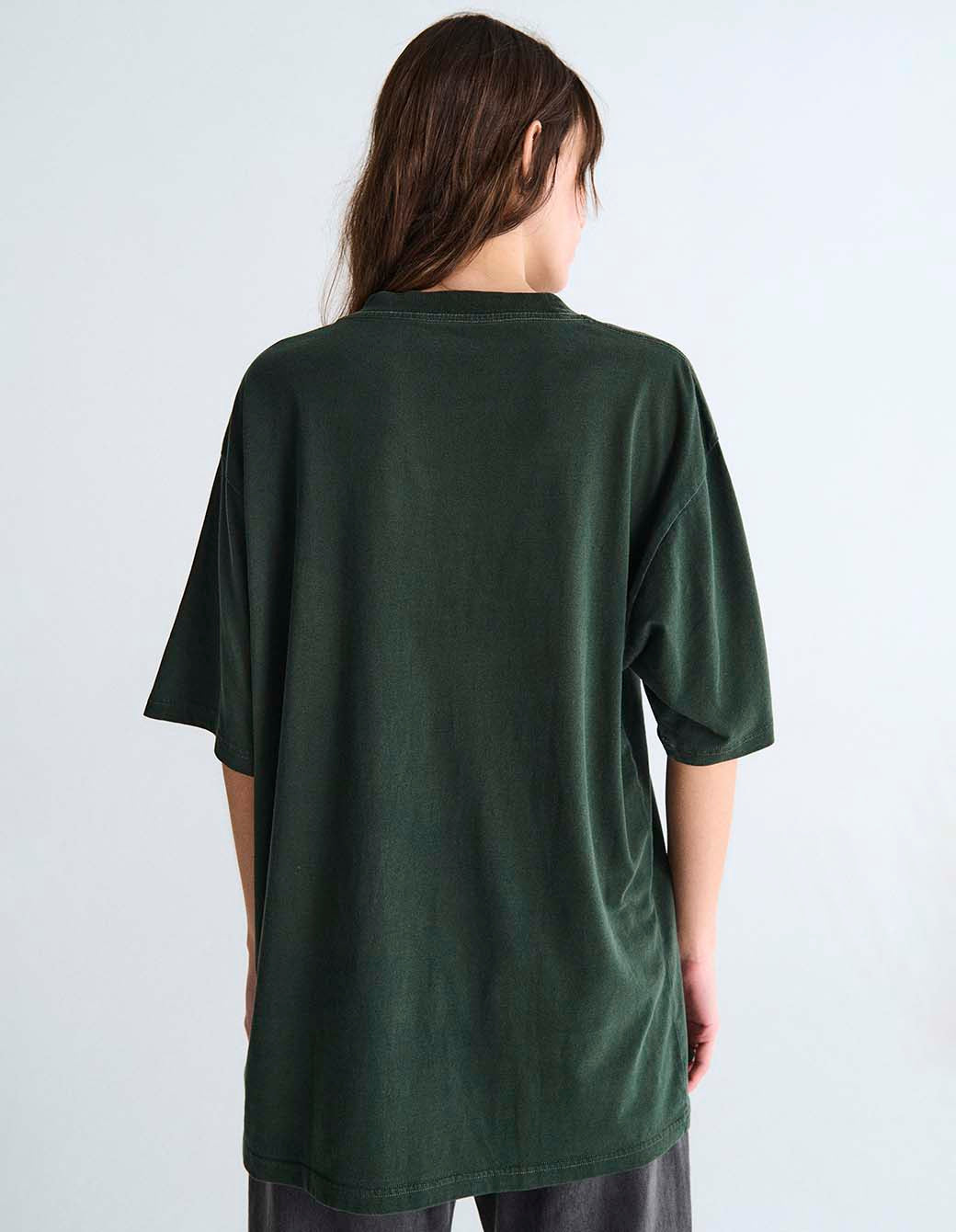 Remera m/c cuello redondo de calce regular en jersey, con proceso de teñido y desgaste de color en prenda. Logo en plastisol.