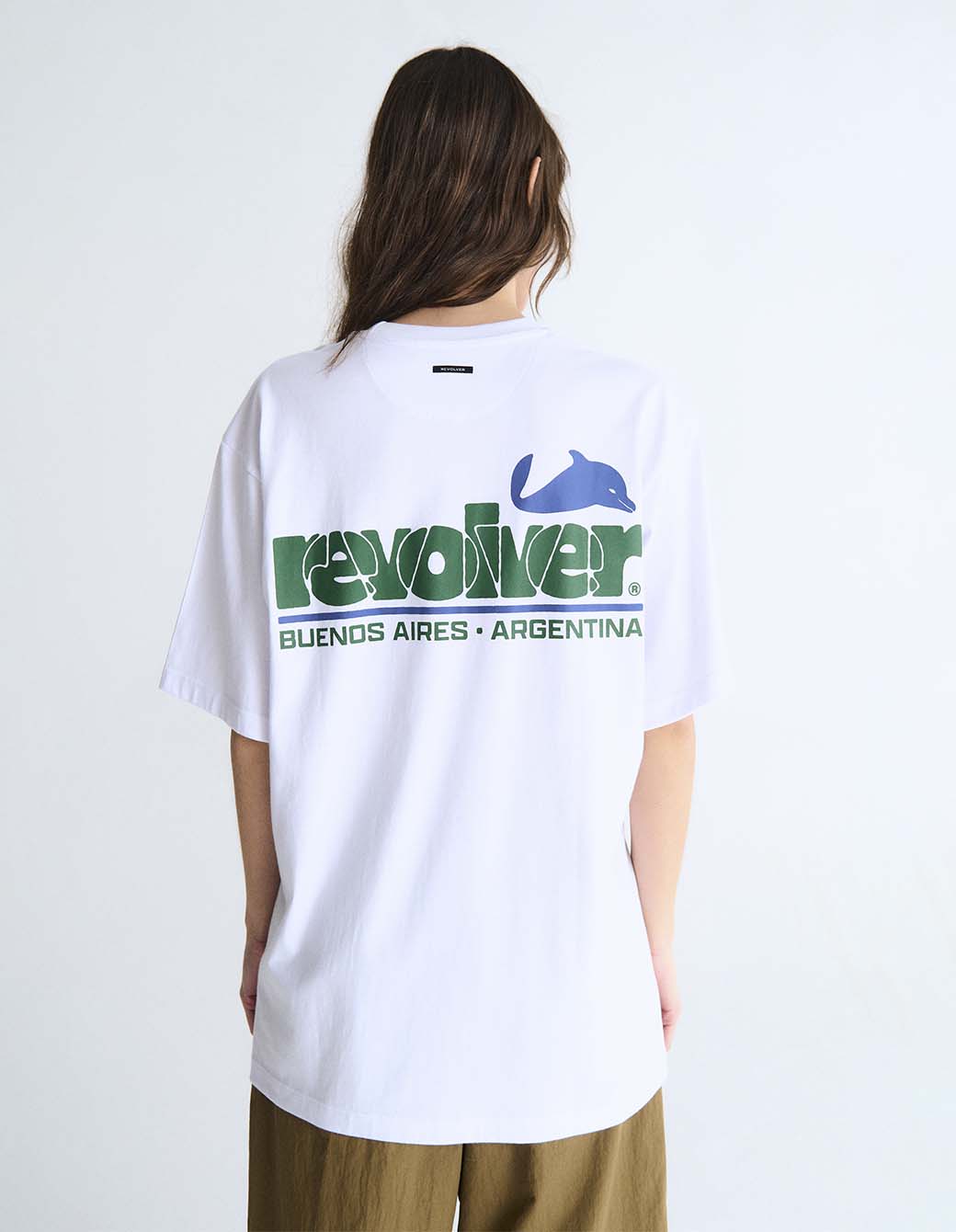 Remera m/c cuello redondo de calce regular en jersey, con estampa al agua frontal personalizada.