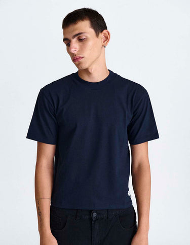 Remera lisa m/c cuello redondo de calce amplio regular en jersey pesado 204grs, con etiqueta personalizada frontal.