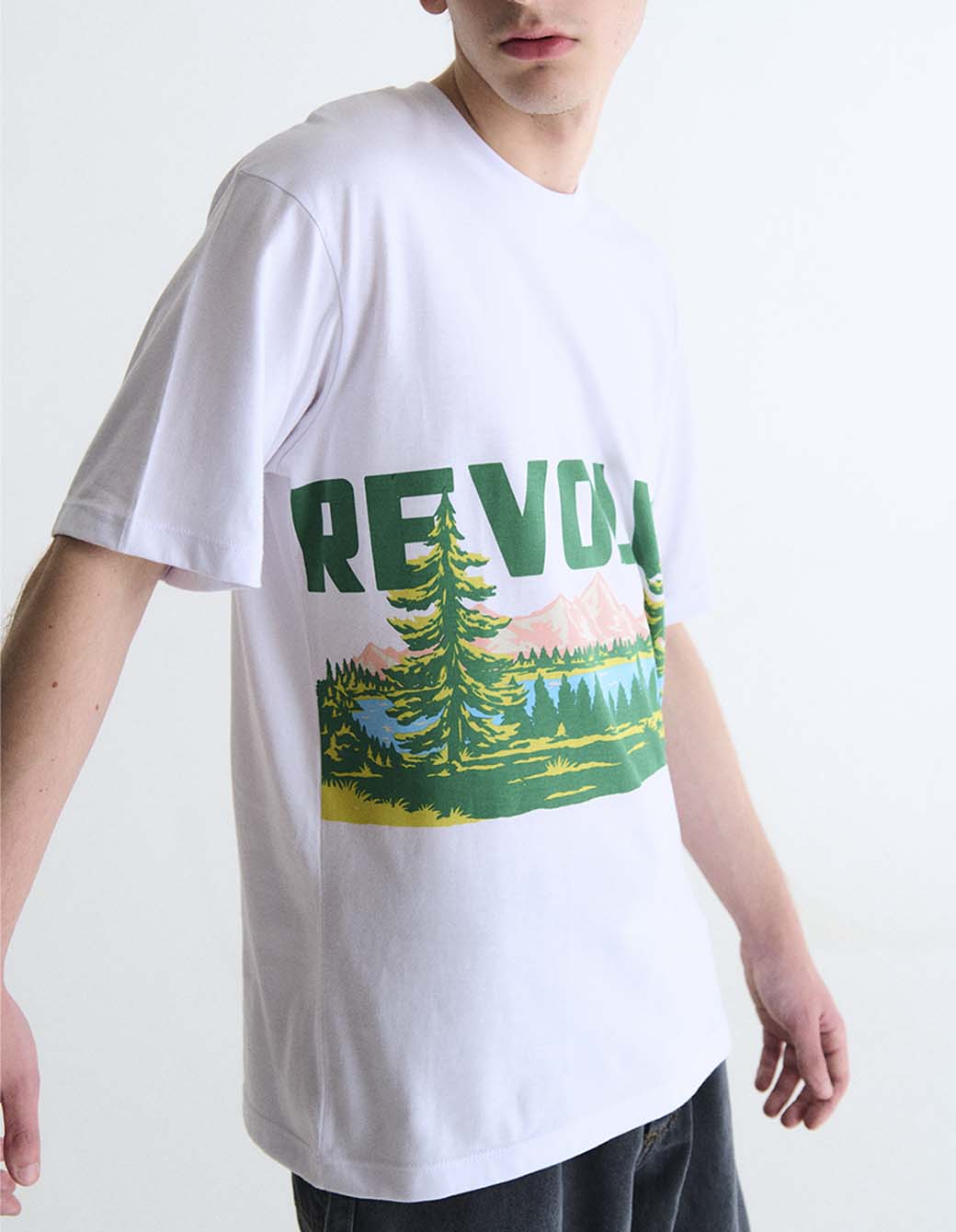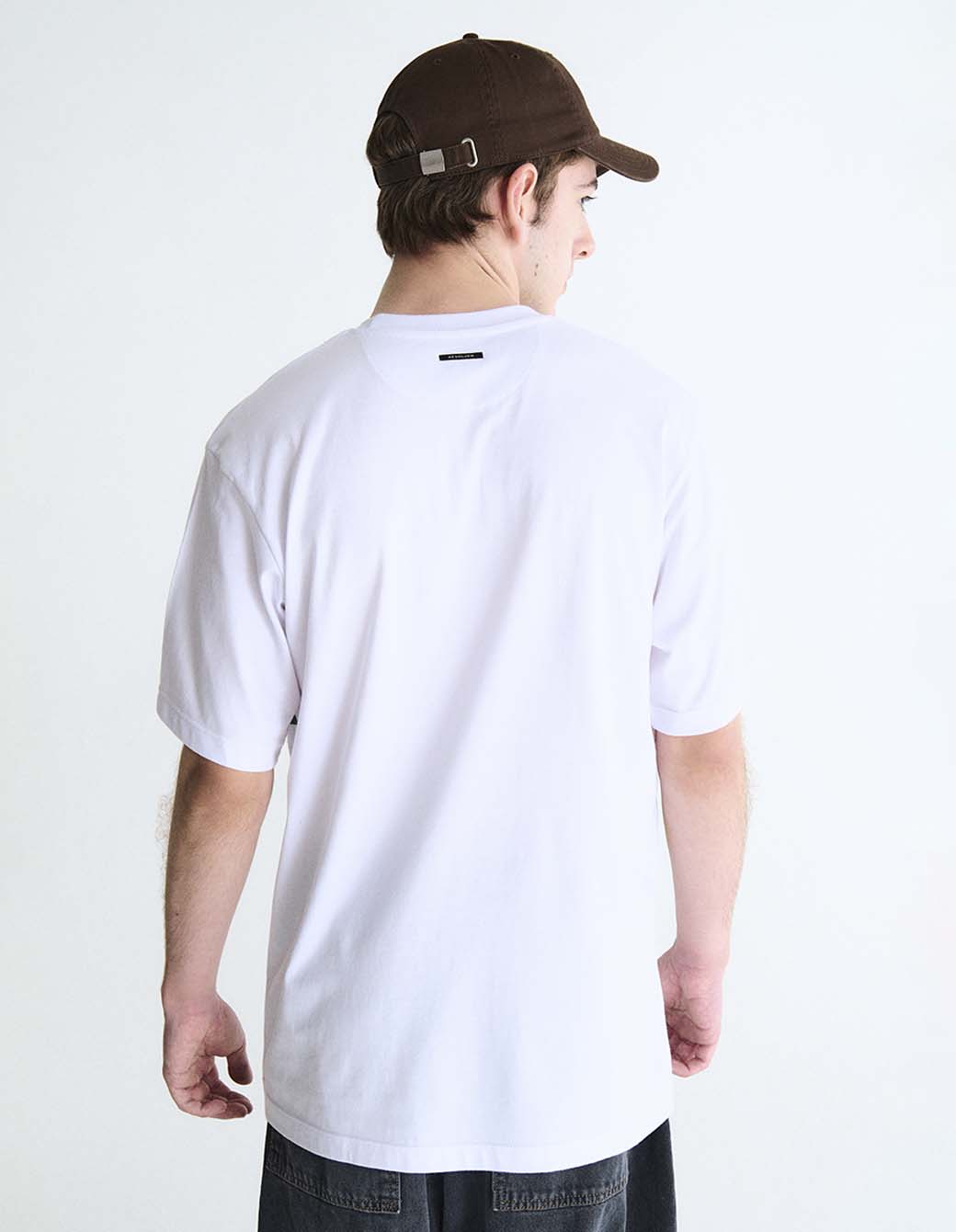 Remera m/c cuello redondo de calce regular en jersey, con estampa al agua frontal personalizada .