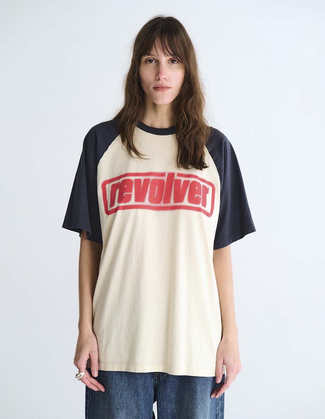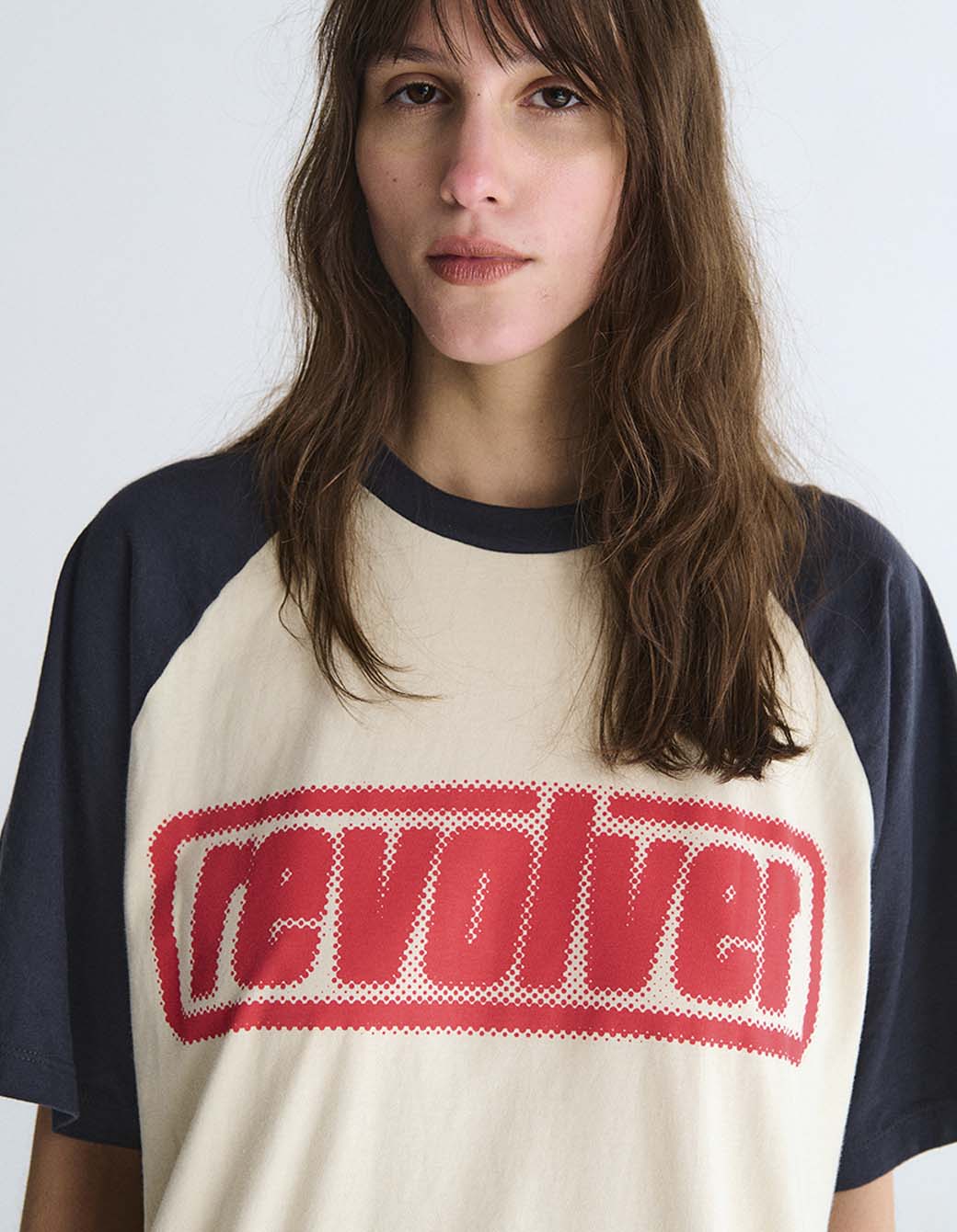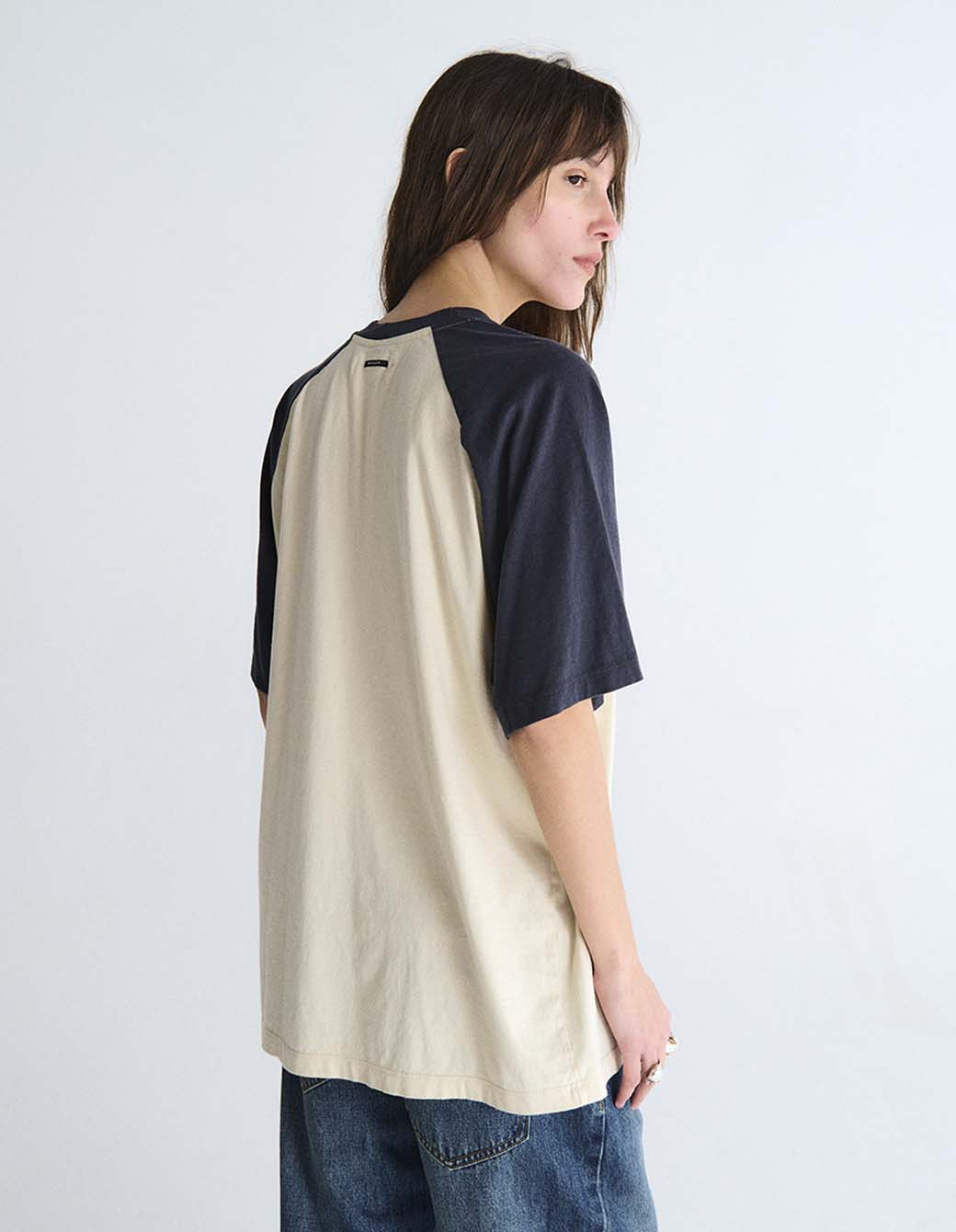 Remera mangas ranglan a contratono, cuello redondo de calce amplio en jersey, con estampa personalizada frontal.